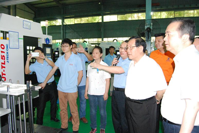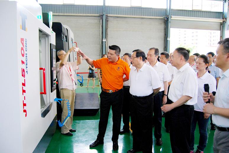 萬(wàn)鋼部長(zhǎng)、周濟(jì)院長(zhǎng)等領(lǐng)導(dǎo)專(zhuān)家聽(tīng)取蘇亞帥董事長(zhǎng)關(guān)于高速鉆攻機(jī)JT-TL510A的成果匯報(bào)