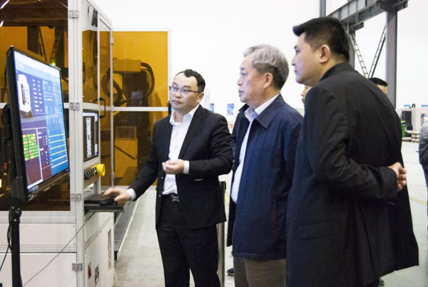 科技部黨組成員郭向遠(yuǎn)仔細(xì)詢問嘉泰數(shù)控關(guān)節(jié)機(jī)器人、智能在線檢測(cè)以及數(shù)字化工廠的細(xì)節(jié)