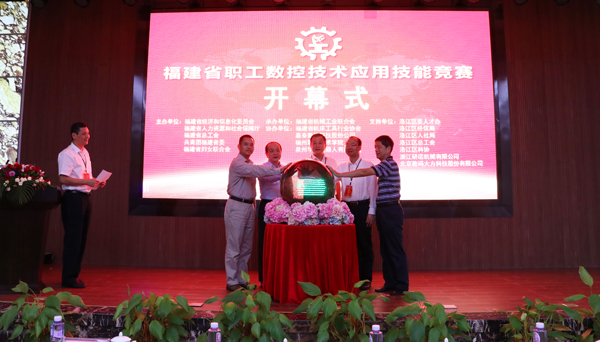 2017年福建省職工數(shù)控技術(shù)應(yīng)用技能競賽的開幕式于2017年10月25日上午在嘉泰數(shù)控科技股份公司辦公大樓多功能會議室召開。福建省經(jīng)信委黨組副書記、副主任梁偉新,福建省人社廳副廳長、公務(wù)員局局長胡忠昭,福建省婦聯(lián)副巡視員鄭元福,福建省機械化工礦冶工會工作委員會主任王華(副廳級),泉州市副市長洪自強等領(lǐng)導(dǎo)以及專家、裁判、參賽選手、媒體記者等200多人出席了開幕式。開幕式結(jié)束后,與會各級領(lǐng)導(dǎo)嘉賓參觀巡視了正在進行的大賽實操現(xiàn)場。