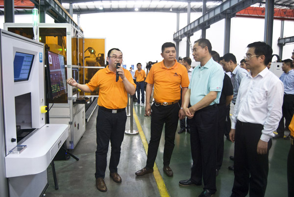 國(guó)家工信部副部長(zhǎng)辛國(guó)斌詳細(xì)了解嘉泰數(shù)控智能制造的各個(gè)環(huán)節(jié)