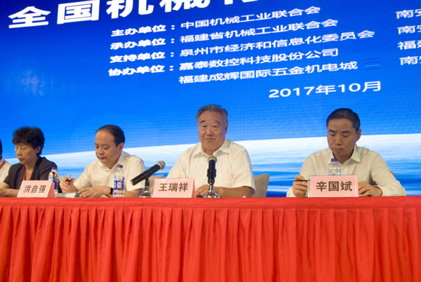 2017年10月12日-13日,由中國機(jī)械工業(yè)聯(lián)合會主辦,嘉泰數(shù)控參與協(xié)辦的“全國機(jī)械行業(yè)轉(zhuǎn)型升級推進(jìn)會”在福建南安召開,工業(yè)和信息化部副部長辛國斌出席會議并發(fā)表重要講話。全國機(jī)械工業(yè)骨干企業(yè)、研究院所、行業(yè)組織等200余名代表參加會議,嘉泰數(shù)控董事長蘇亞帥作為福建省機(jī)床工具行業(yè)協(xié)會會長也應(yīng)邀參加。會議期間,辛國斌副部長及參會嘉賓還實(shí)地走訪嘉泰數(shù)控調(diào)研指導(dǎo)。