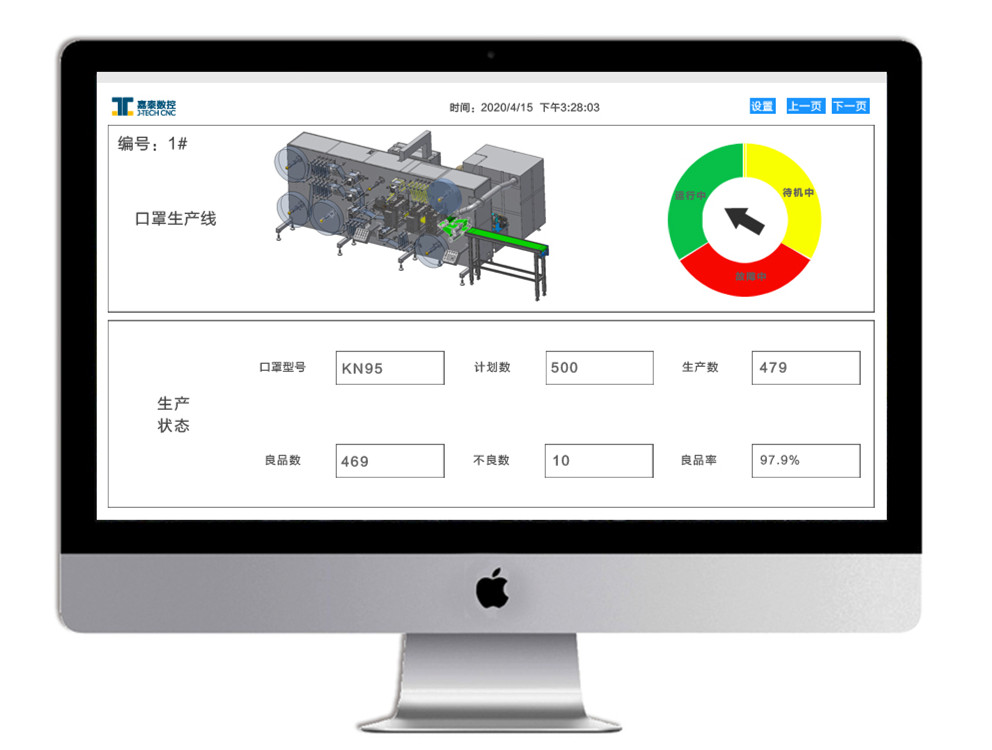 互聯(lián)網(wǎng)遠(yuǎn)程運(yùn)維、監(jiān)控和管理,云監(jiān)控系統(tǒng)對設(shè)備進(jìn)行實(shí)時(shí)監(jiān)控口罩的質(zhì)量、產(chǎn)量和設(shè)備狀態(tài),并實(shí)時(shí)反饋給管理人員,高度智能化為產(chǎn)品質(zhì)量和產(chǎn)能保駕護(hù)航。