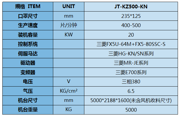 隨著全球新冠肺炎疫情的擴(kuò)散,國外口罩需求激增,KN95口罩緊缺。嘉泰數(shù)控依托20多年的裝備制造經(jīng)驗(yàn)和資源,主動承擔(dān)防疫抗疫責(zé)任,全力以赴,成功研制高速智能KN95口罩制片機(jī)JT-KZ500-KN。