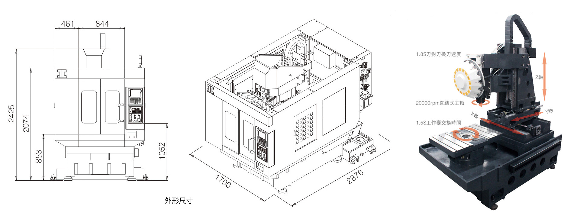產(chǎn)品特點(diǎn):整機(jī)三軸行程疊加式動(dòng)柱結(jié)構(gòu),可實(shí)現(xiàn)工作臺(tái)回轉(zhuǎn)的同時(shí),三軸、主軸、附加軸的定位和刀具交換;節(jié)省工作臺(tái)交換的時(shí)間,實(shí)現(xiàn)無(wú)停頓加工,提高了有效加工的時(shí)間。